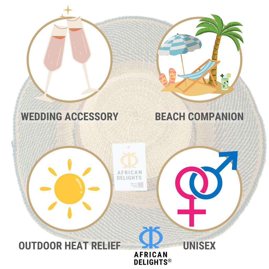 Stay cool and stylish with our African Delights Adult Size Adjustable African Straw Sun Hat. Handmade in Ghana, this 8-inch hat is perfect for protecting your skin from the sun while adding a touch of culture to your outfit. Adjustable for the perfect fit.