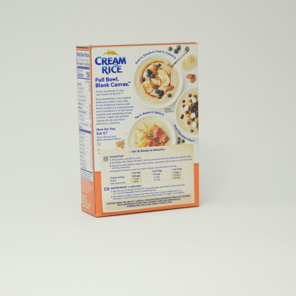 Enjoy a healthy and delicious breakfast with Cream of Wheat's Cream of Rice 14oz. Made with granulated rice, this gluten-free, cholesterol-free, and fat-free hot cereal is a good source of iron, vitamins, and minerals. Perfect for kids and adults alike, this creamy rice is an ideal option for cafes, bistros, and hospital cafeterias. Just add boiling water and enjoy in 30 seconds!