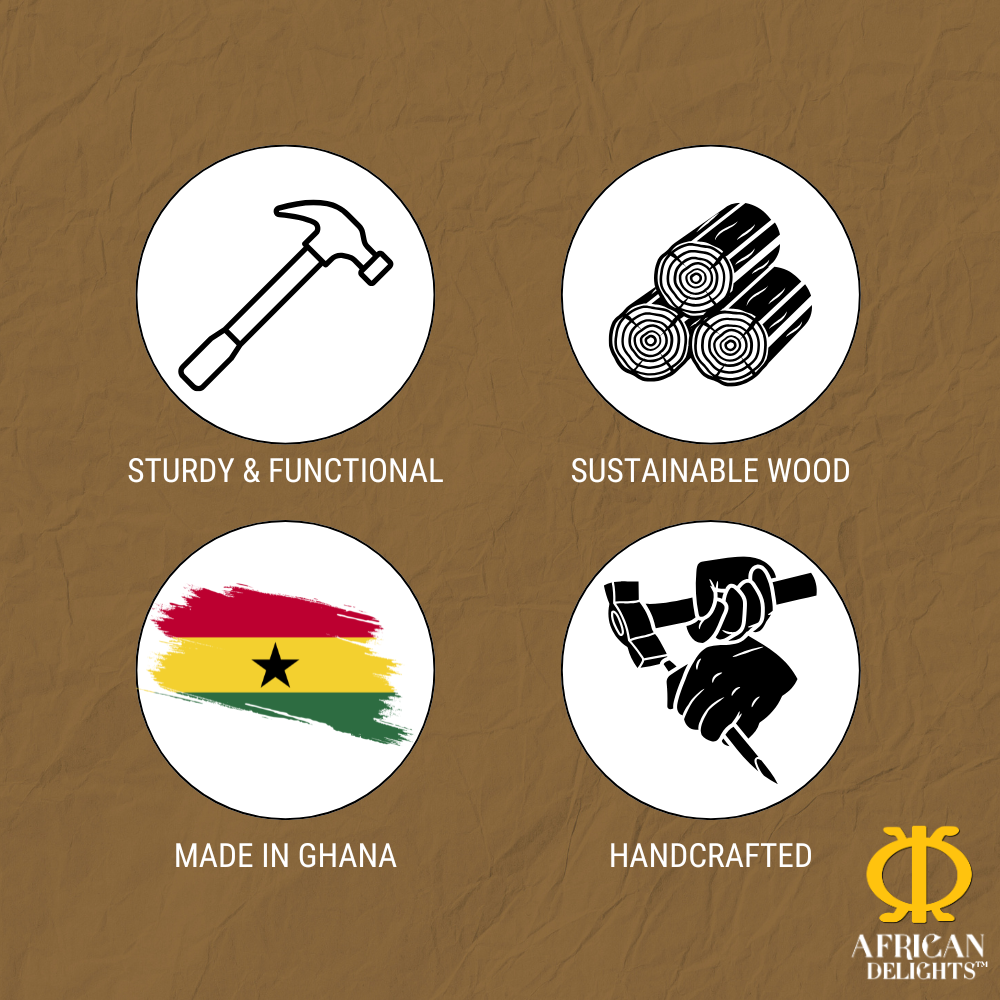Elevate your cooking experience with our handcrafted Banku Stick. Skilled artisans in Ghana have carefully crafted this premium-quality wood stick. Its ergonomic design allows for a comfortable grip and precise control, making it effortless to prepare traditional Banku dishes to perfection.