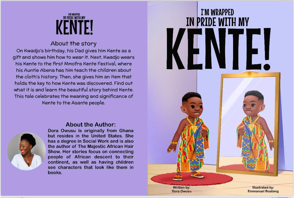 On Kwadjo's birthday, his dad gives him kente as a gift and shows him how to wear it. Next , Kwadjo wears his kente to the first Mmorfra Kente Festival, where his Auntie Abena has him teach the children about the cloth's history. Then she gives him an item that holds the key to how the kente was discovered. Find out what it is and learn the beautiful story behind kente. This tale celebrates the meaning and significance of kente to the Ashanti people.