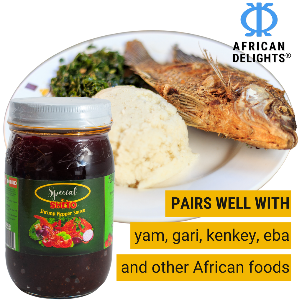 Indulge in the flavorful blend of natural ingredients with Julie's Special Shito sauce. This shrimp pepper sauce, made in the USA in clean and hygienic conditions, is perfect for pairing with kenkey, banku, gari, or yam. With its convenient packaging and clear instructions, maintain freshness with every use.
