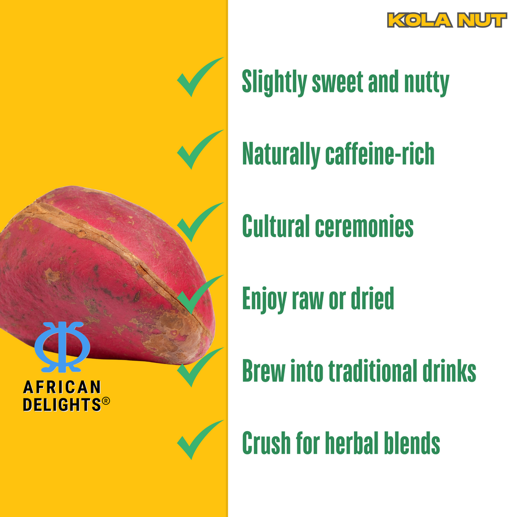 Kolanut, a caffeine-containing fruit indigenous to the rainforests of Africa, is commonly used as a flavoring ingredient in beverages. Its properties can aid in digestion by promoting gastric acid production and improving blood circulation.