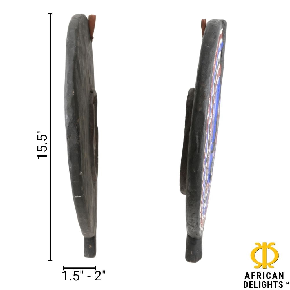 Large Wooden Mask: With a diameter of 15.5 inches and weighing between 2.7 - 3lbs, this wooden mask is substantial African sculpture art, ideal for those seeking African masks wall decor large.